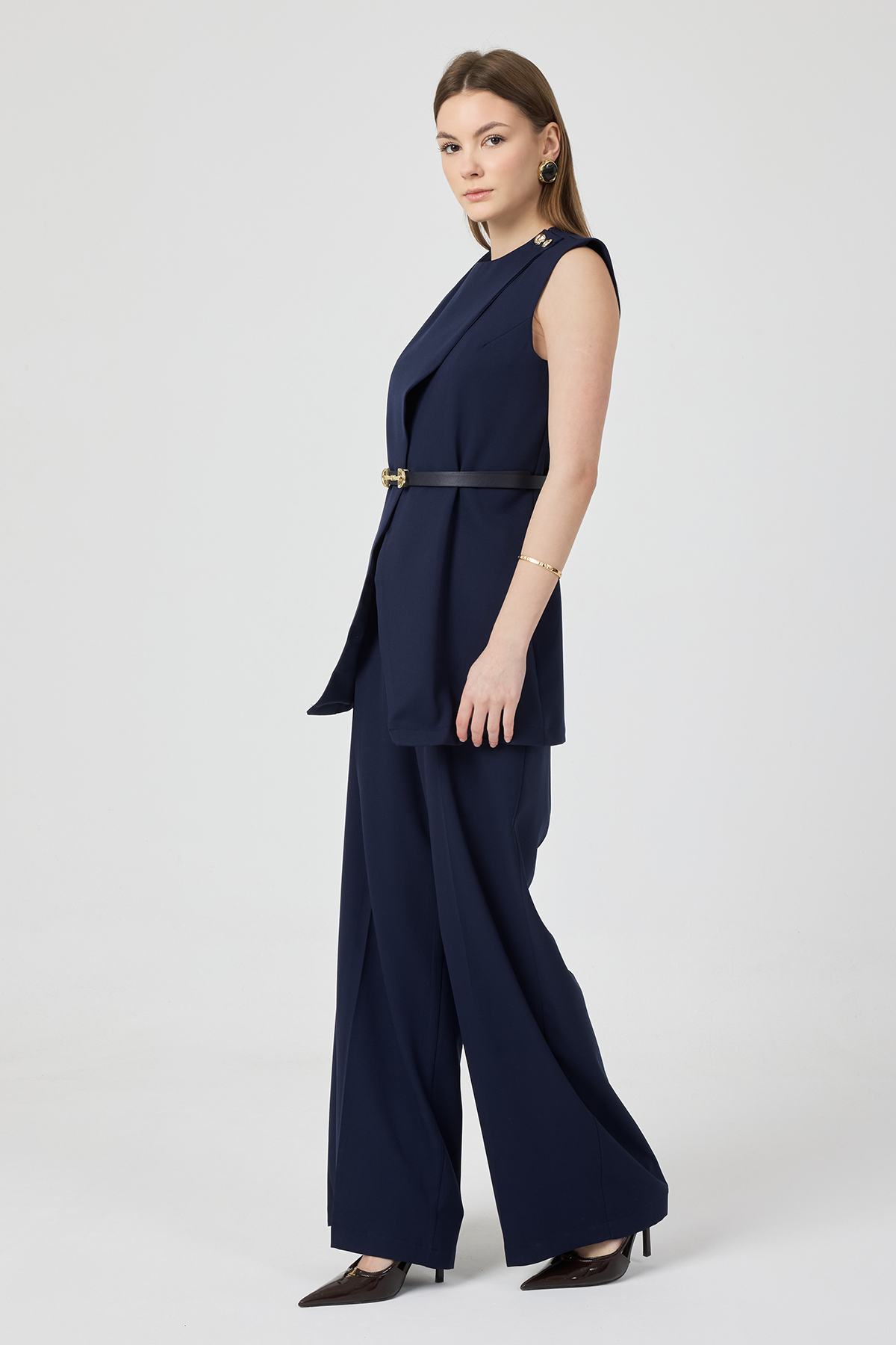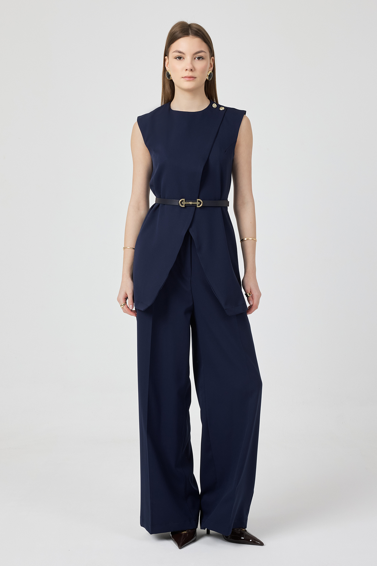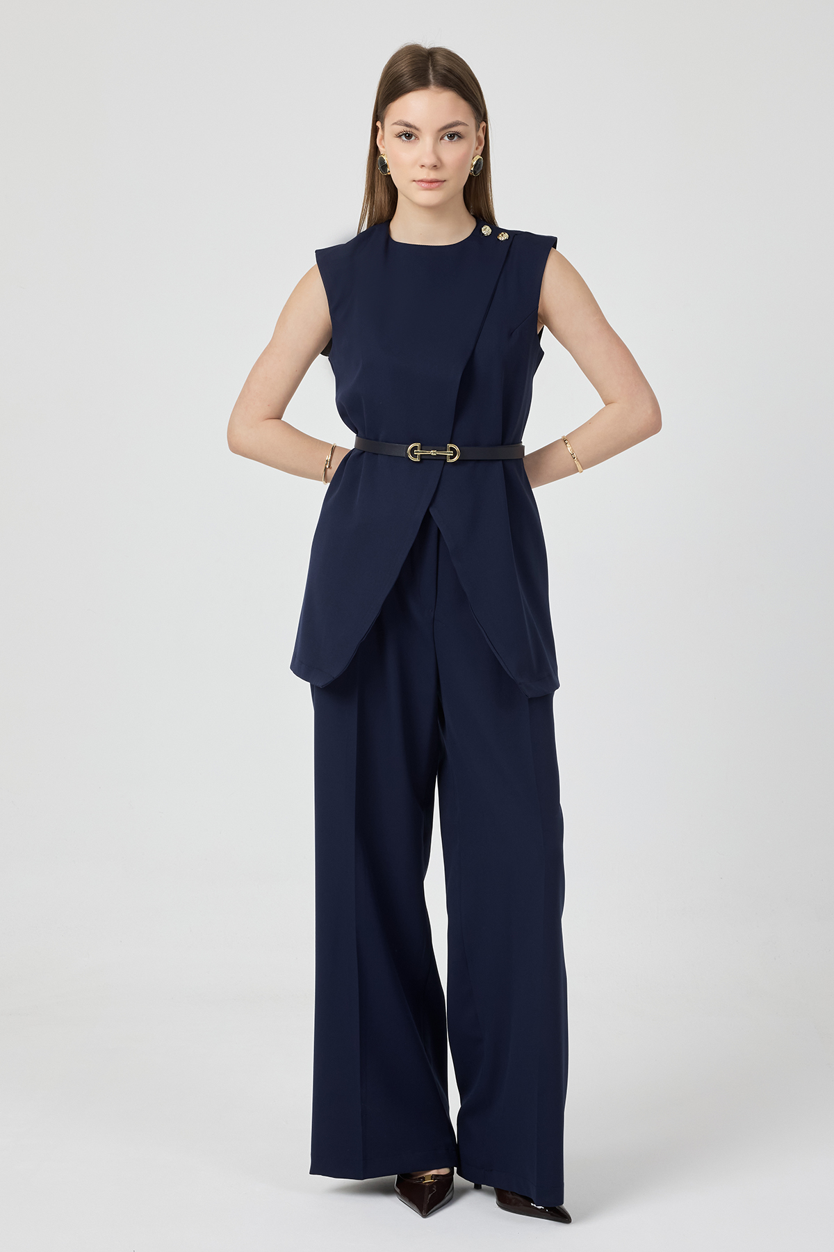Asimetrik Yelekli Takım - Lacivert