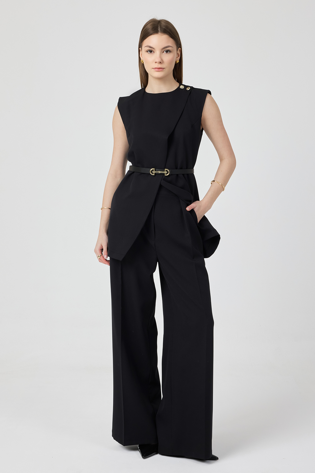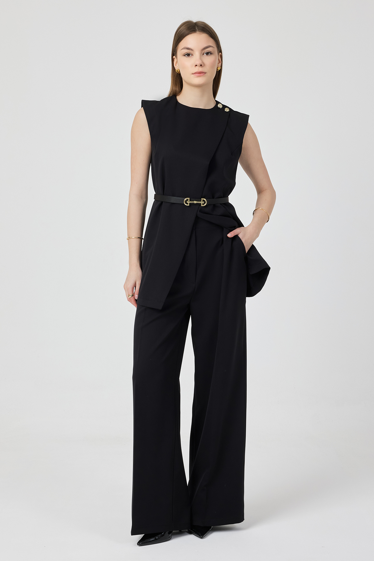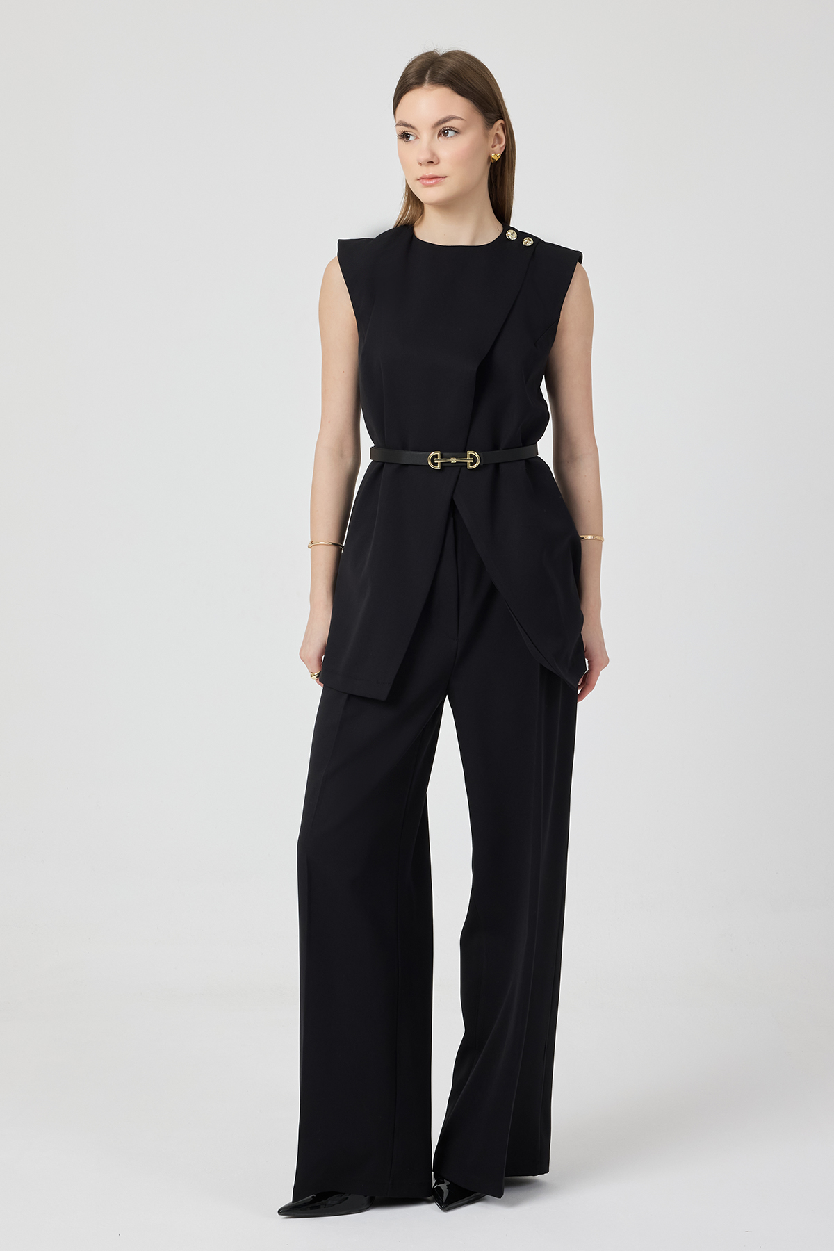 Asimetrik Yelekli Takım - Siyah