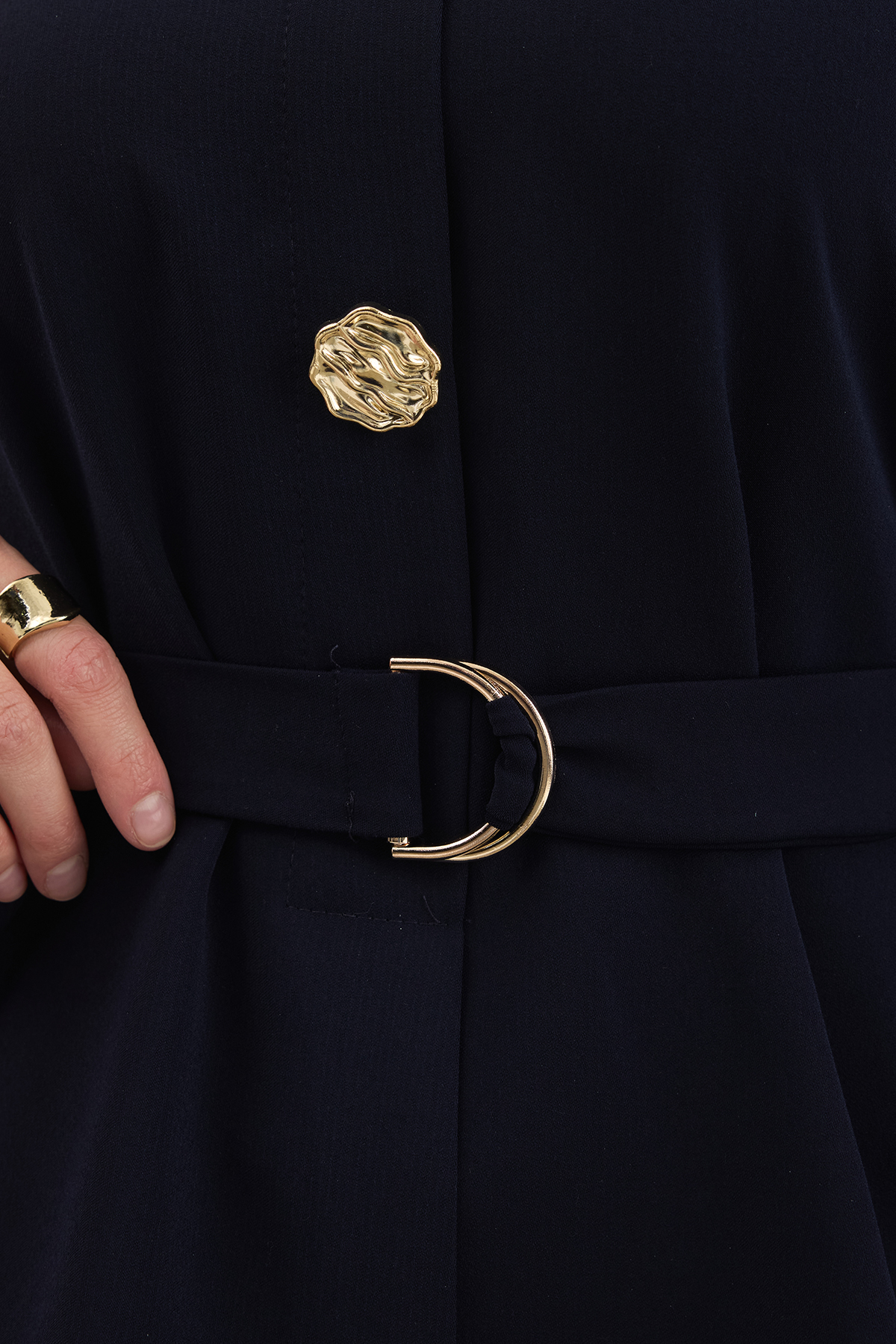 Gold Düğme Detaylı Etek Bluz Takım - Lacivert