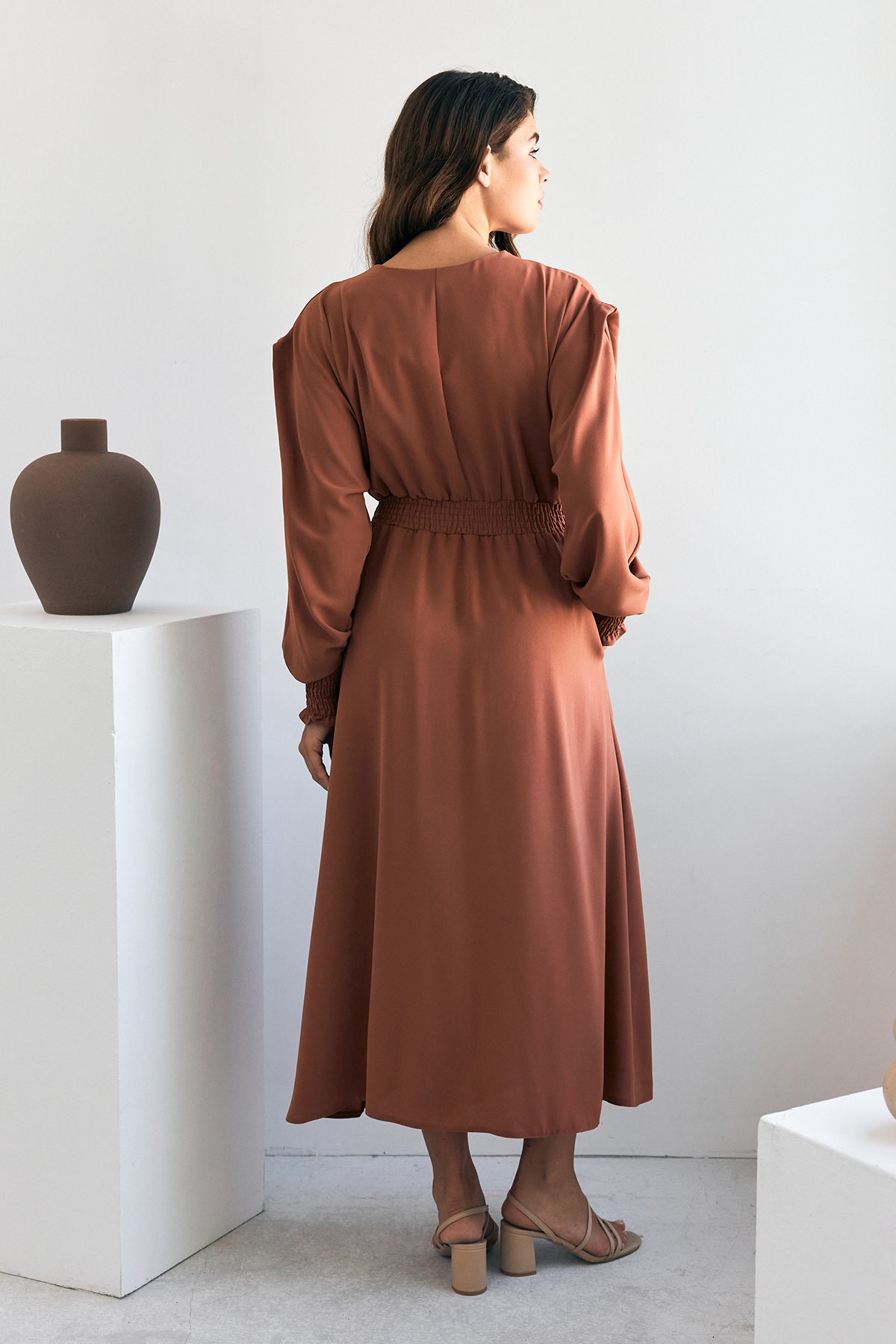 Laura Beli Büzgülü Kap - Camel