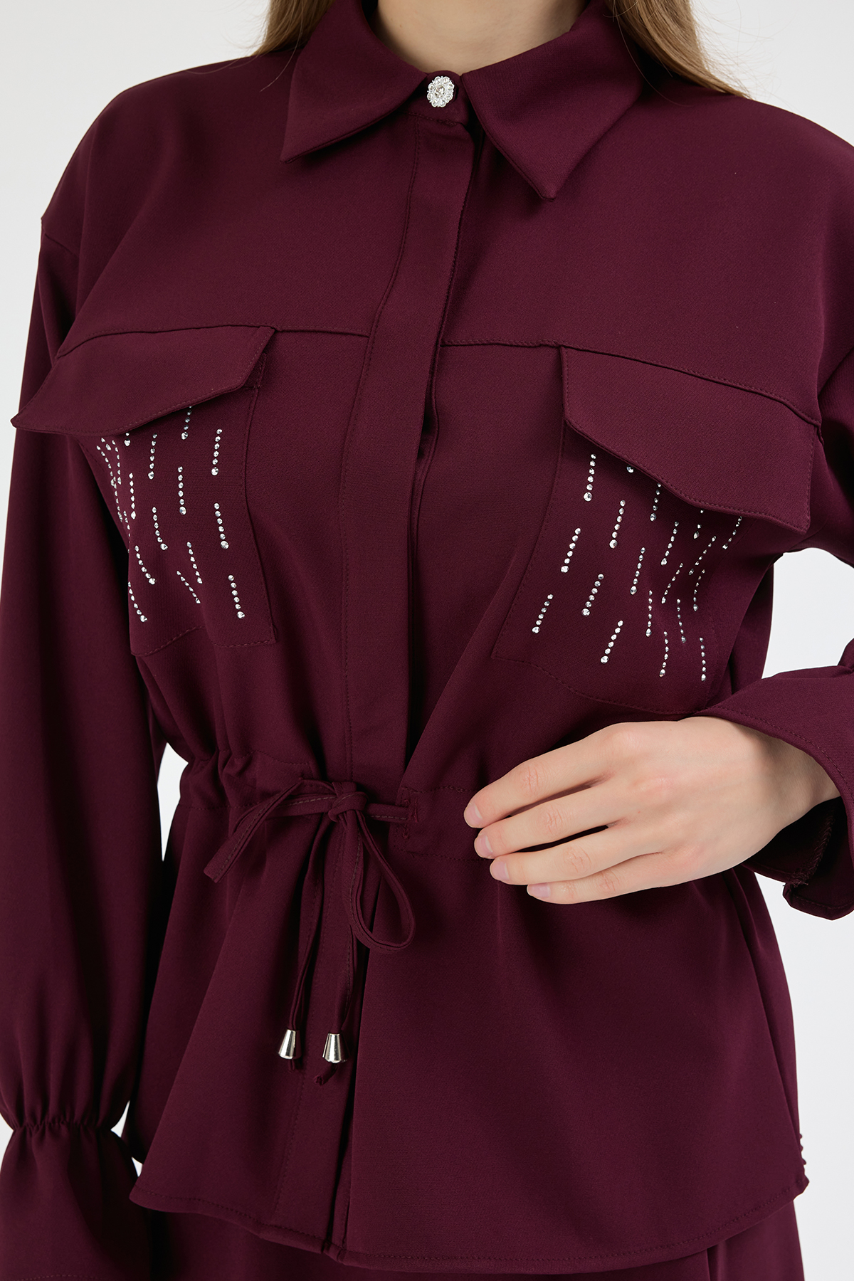 Gömlek ön kısmı gizli pat düğmelidir.