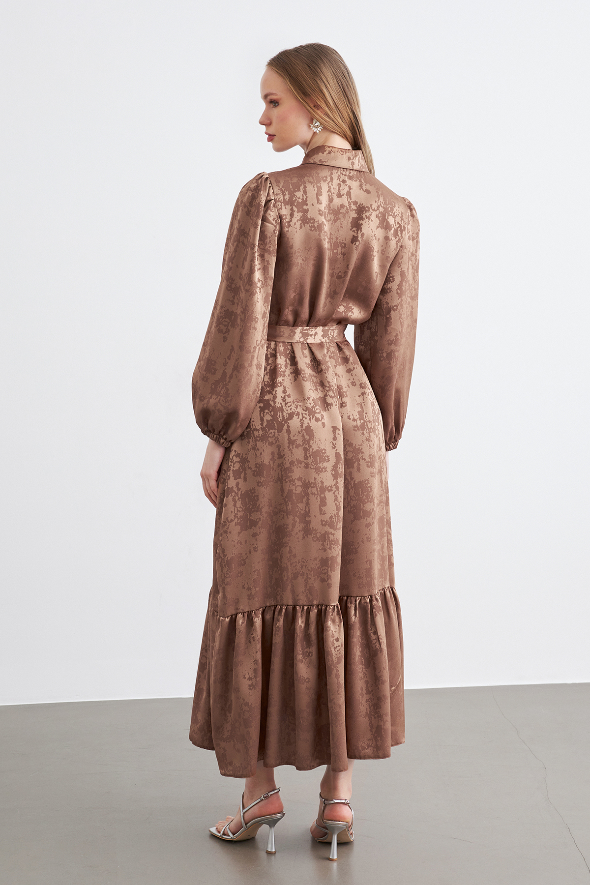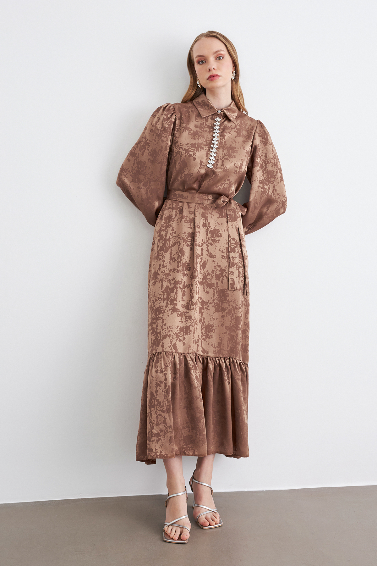 Mayra Taşlı Jakar Elbise - Camel