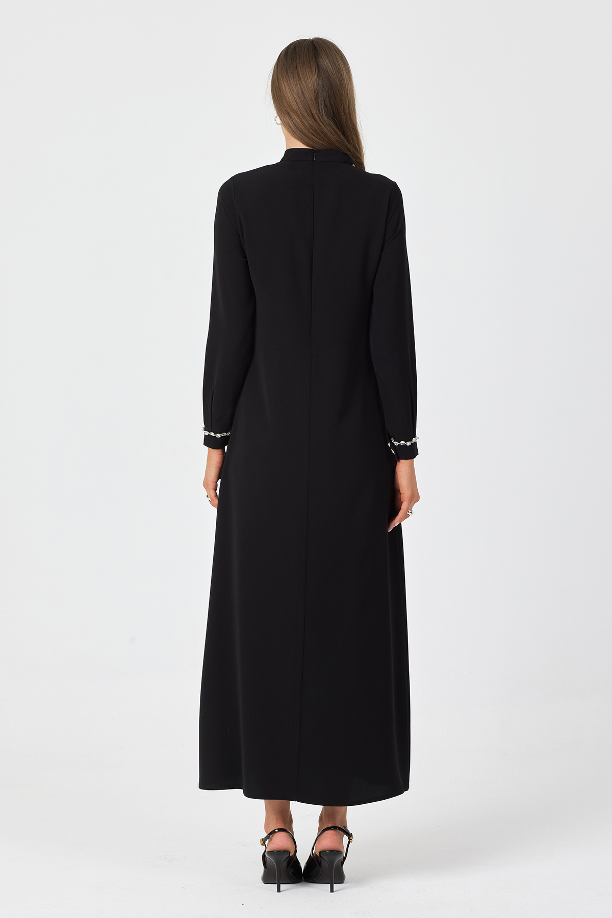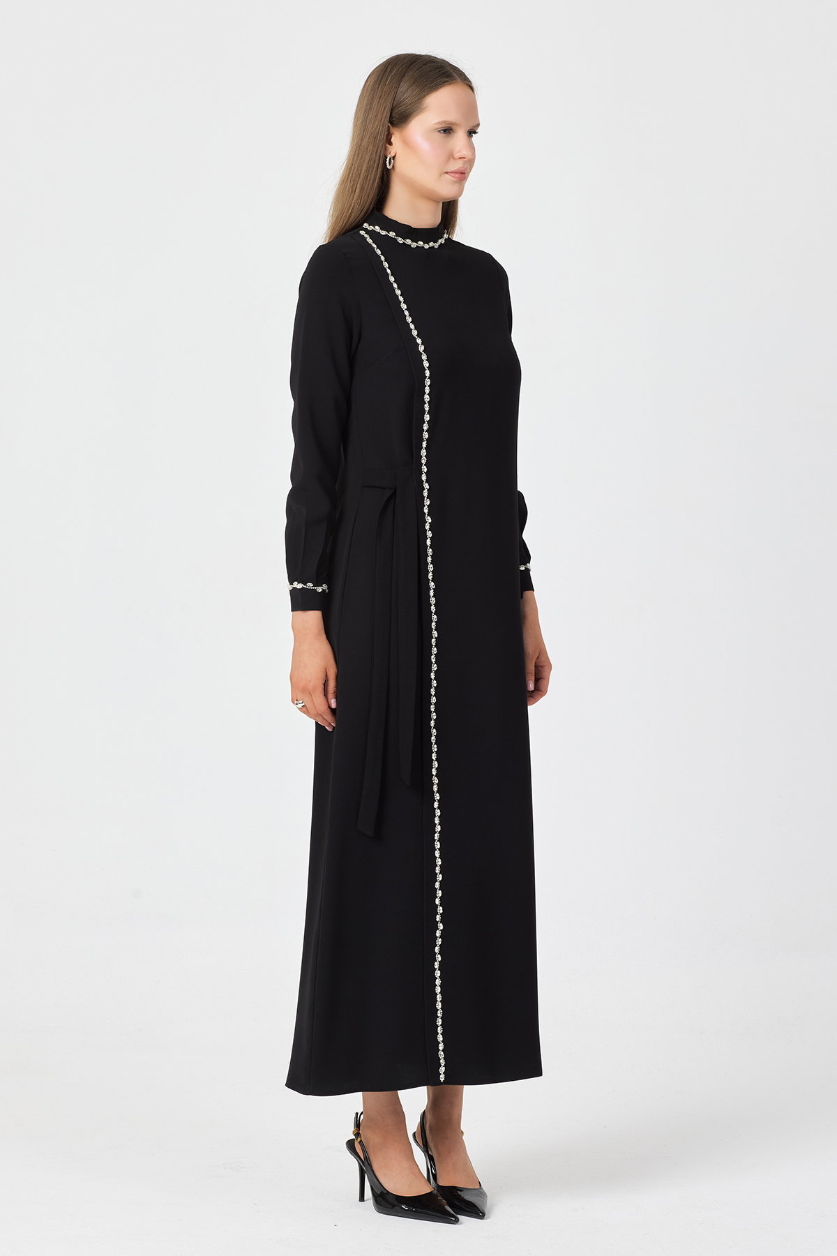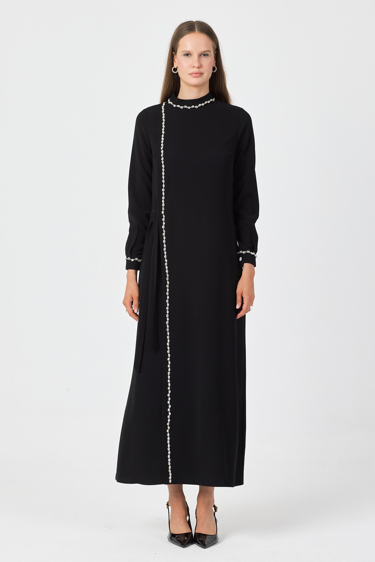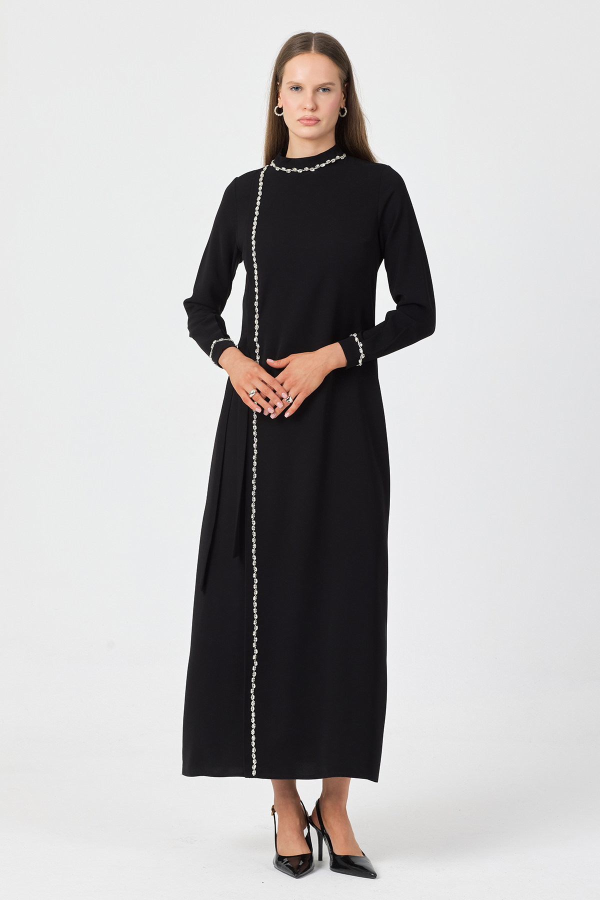 Mira Taş Şeritli Elbise - Siyah