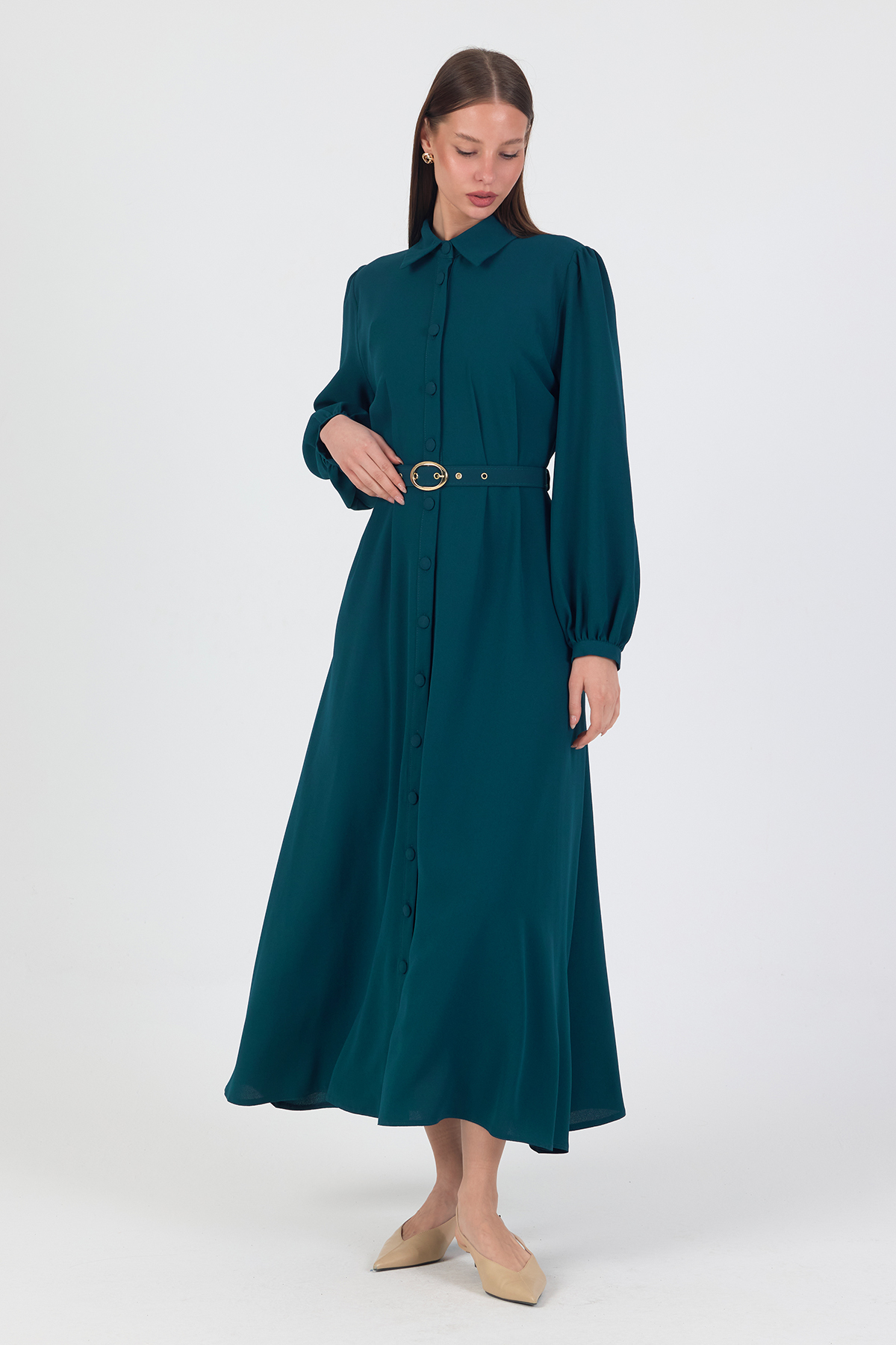 Mono Kemerli Elbise - Petrol