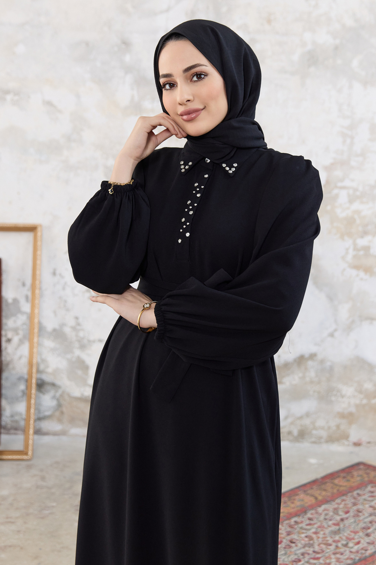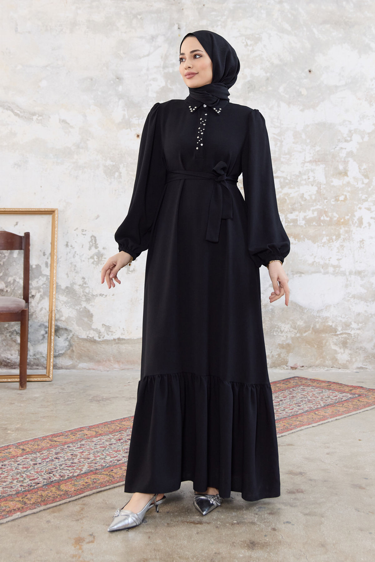 Neva Taşlı Elbise - Siyah