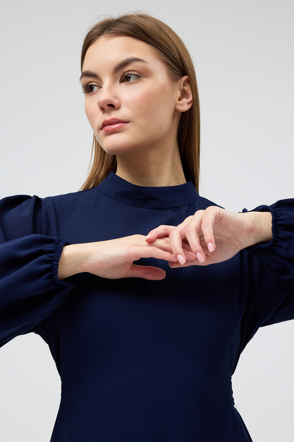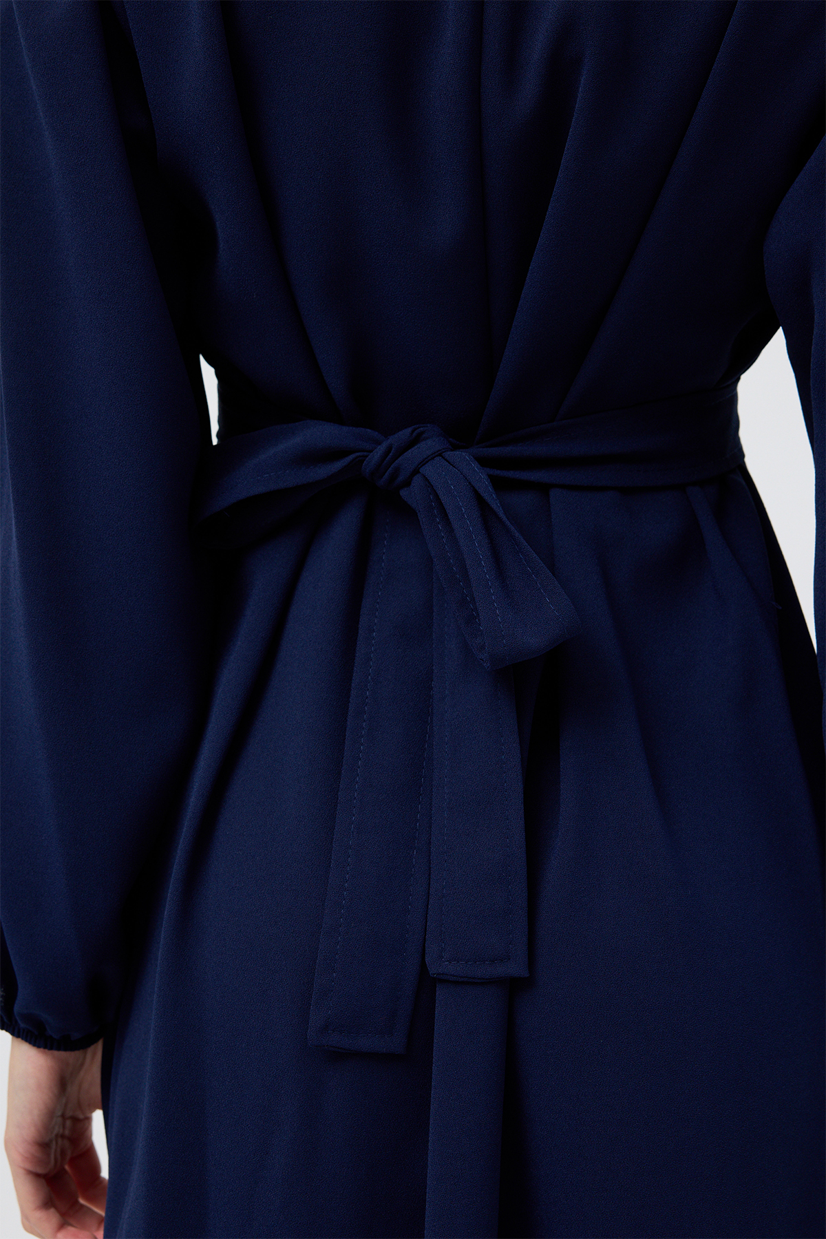 Ürün krep kumaştan imal edilmiştir, Belinde sabit kuşak detayı mevcuttur, Kol manşetleri lastiklidir.