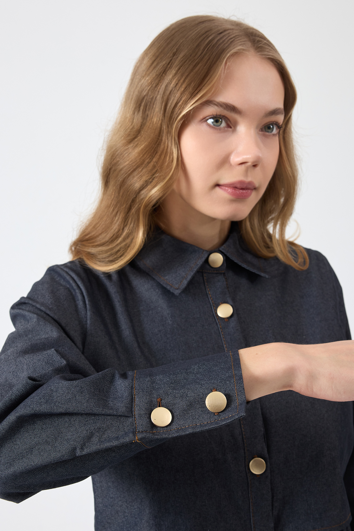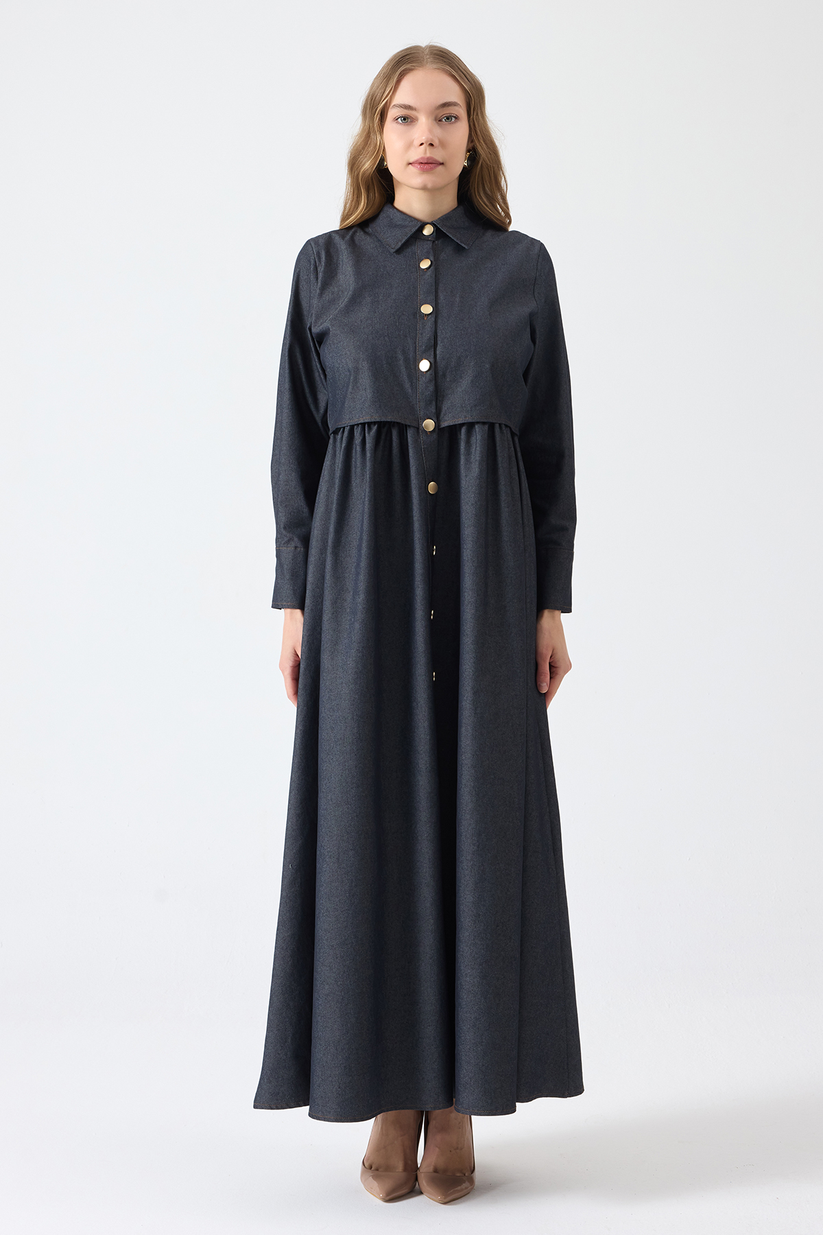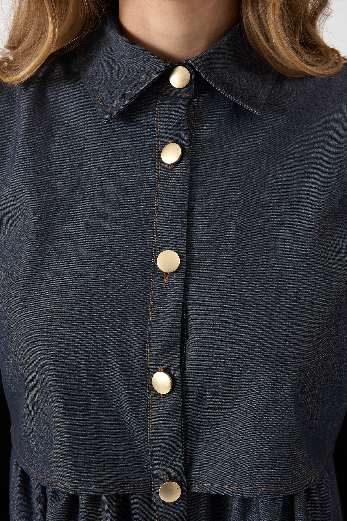 Önü Düğmeli Denim Elbise