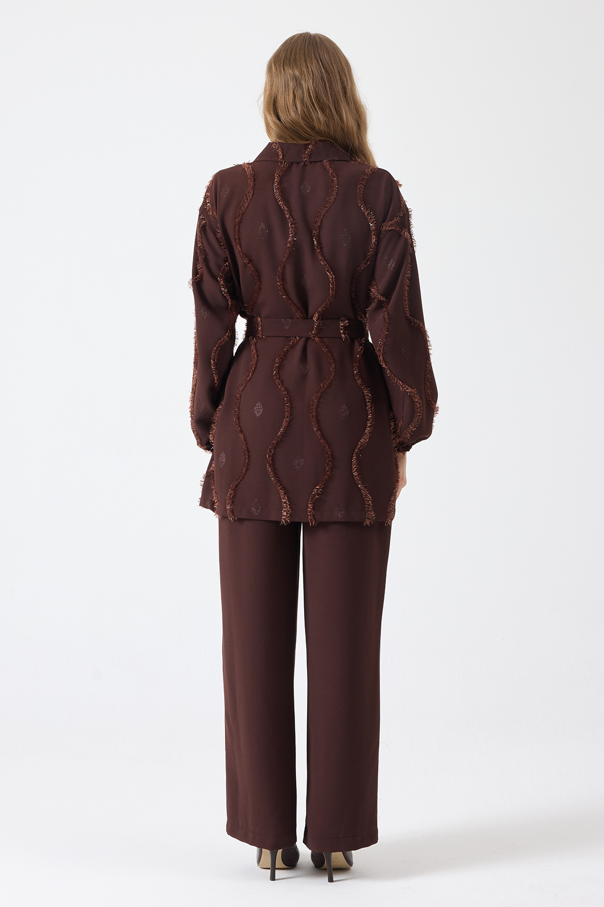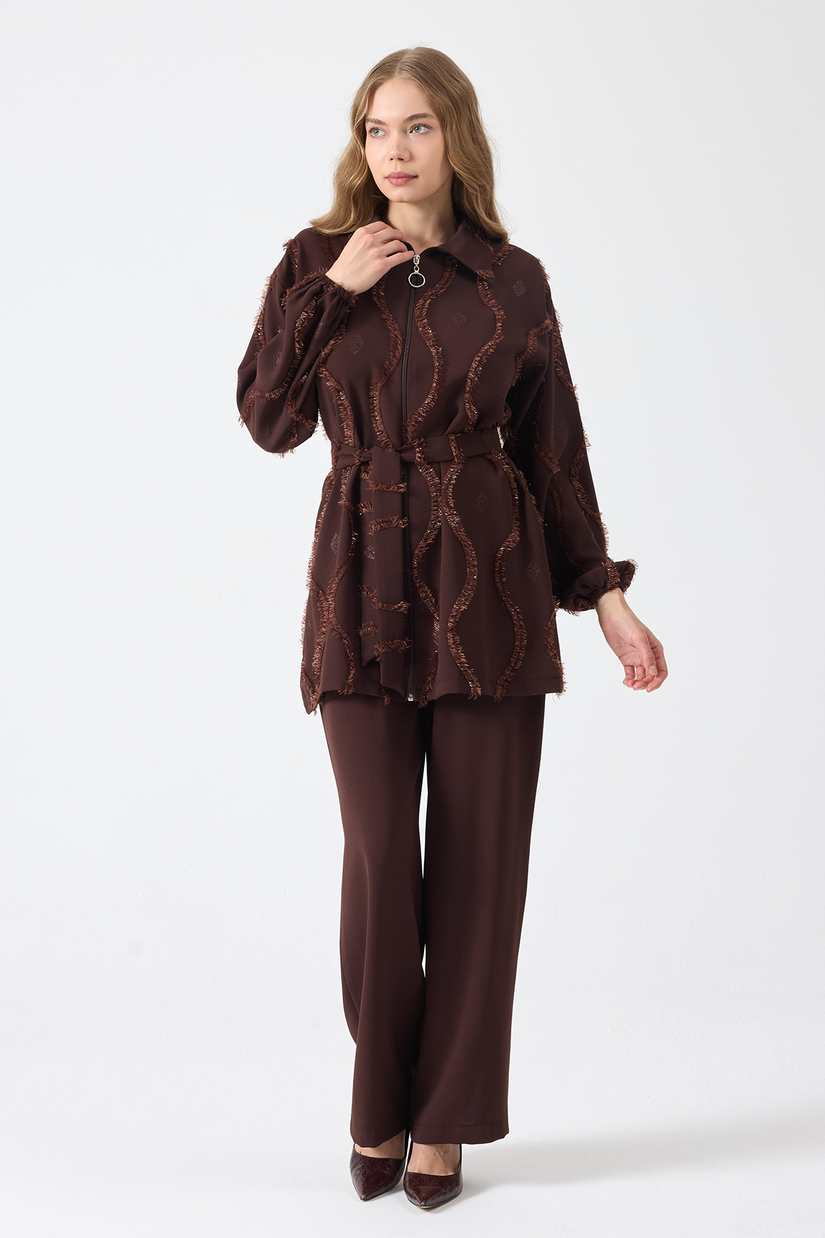 Püskül Detaylı Fermuarlı Takım - Kahve