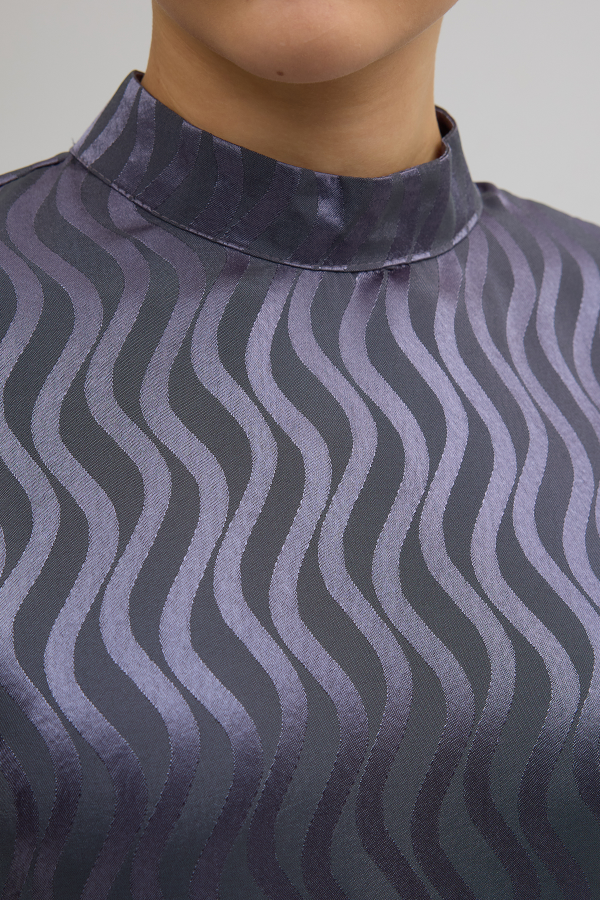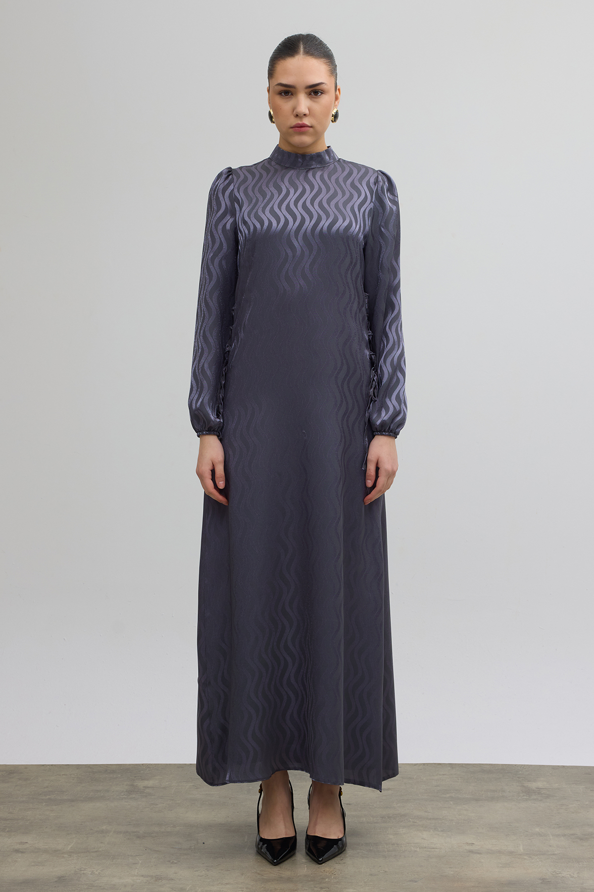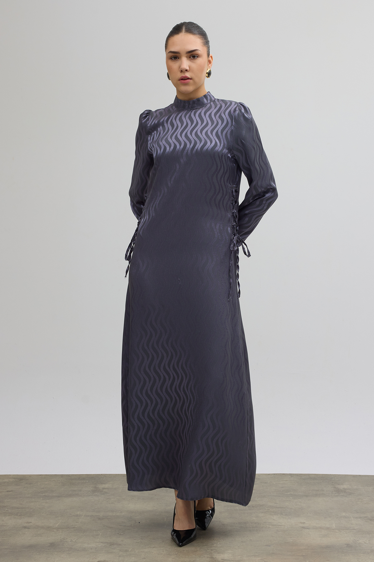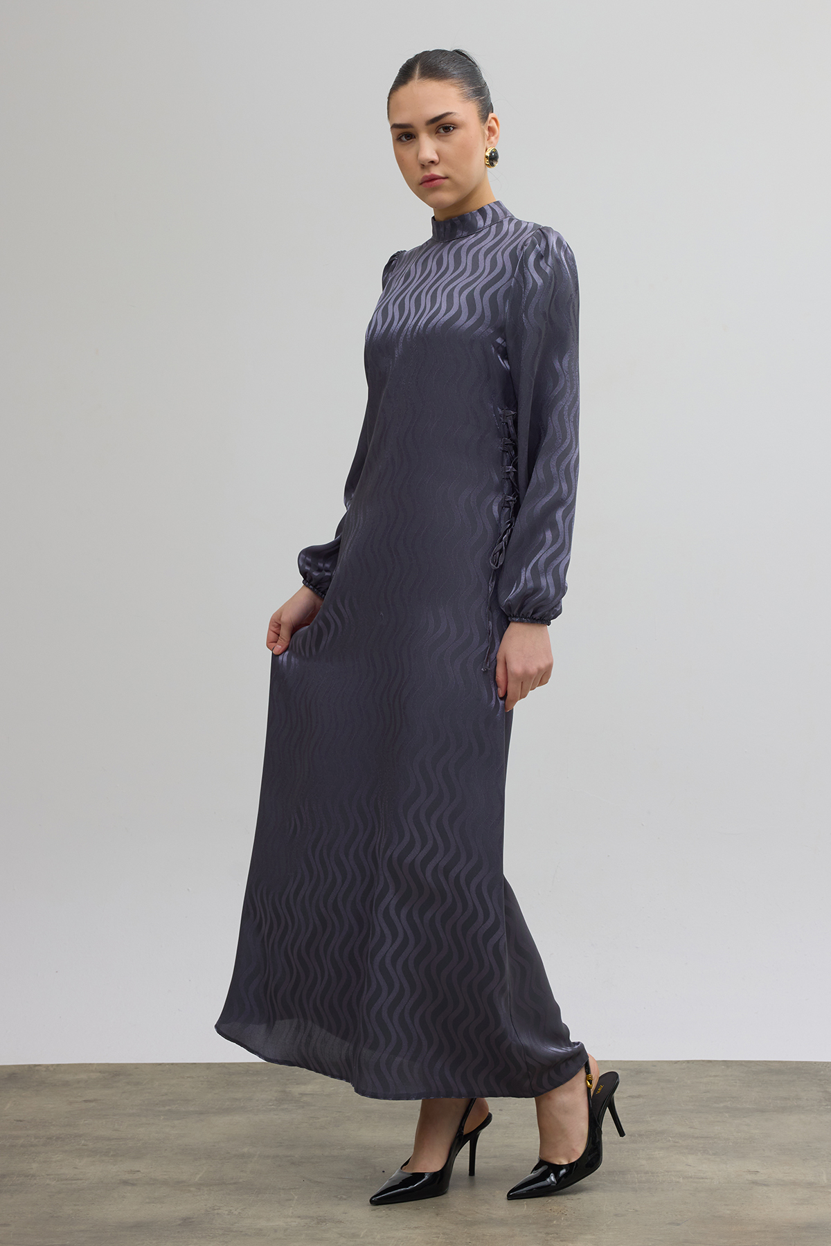 Yan Bağcık Detaylı Jakar Elbise - Gri